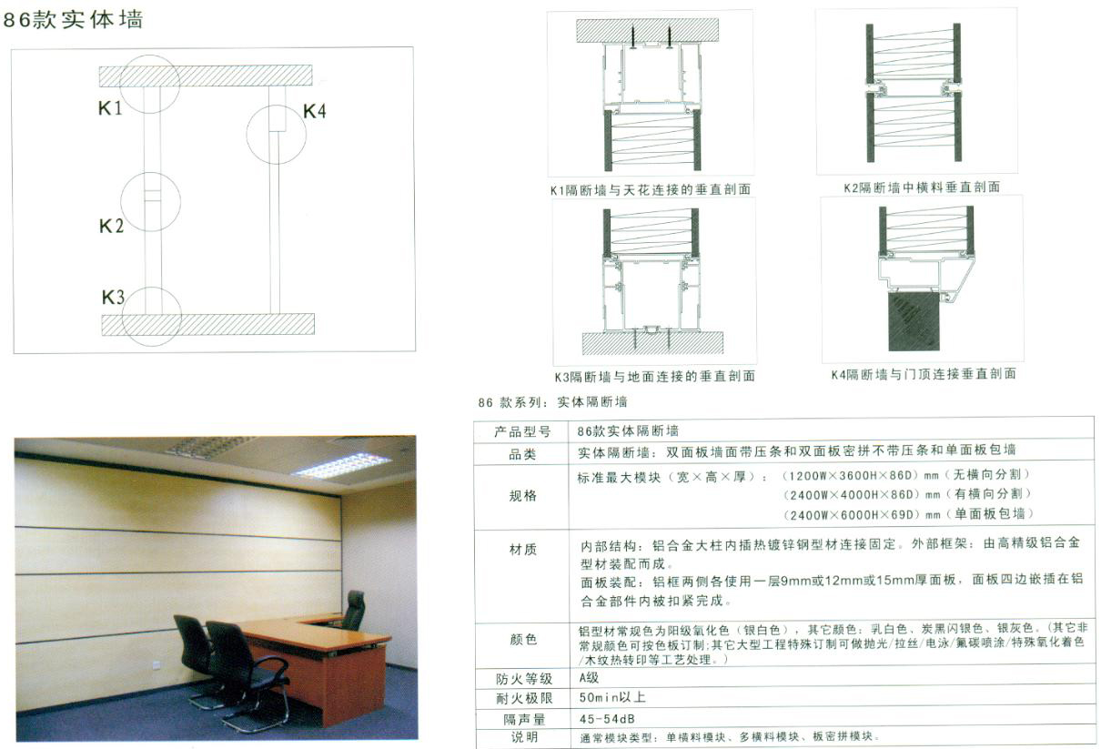 左圖為86mm雙面高隔斷剖視圖 |
